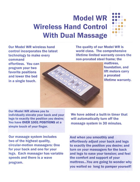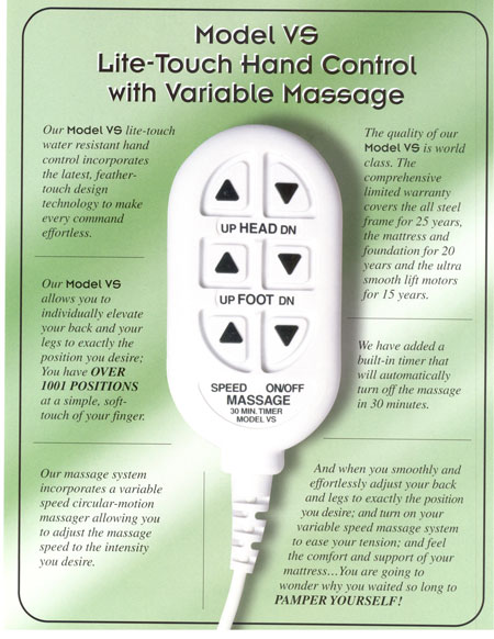 adjustable bedsNOTE:  Adjustable Beds are too important to purchase without first talking to an ELECTRIC-PEDIC Factory Representative.  After just a few questions, we can better understand the correct model, size and length and height, MATTRESS and firmness, hand control and optional massage system, brackets and bedding, . . . that you need.  After 45 years asking some simple questions BEFORE YOU ORDER helps us to assure your 100% Satisfaction, which is our First and Foremost Goal.  We have an "A" Rating with the BBB - so we must be doing something right!