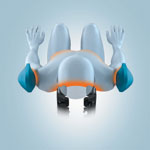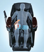 Airbags on both sides hold the pelvic area in place as the massage heads knead the lower back