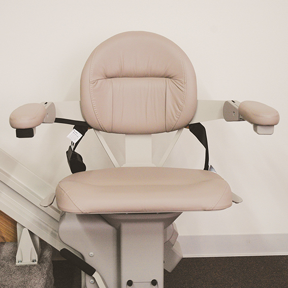 | Highlights ✦Elite Straight stairlift capacity: 400 lbs (181 kg) ✦Plush, generous-size curve with multiple height adjustments ✦Offset swivel curve makes getting on/off safe and easy ✦Adjustable footrest height for maximum comfort
