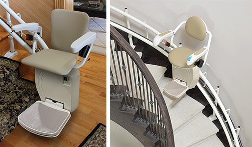 Do you need a stairlift installed quickly that can easily take turns and curves, or would you prefer a stairlift with a sleeker, more custom rail design? Enjoy a possible next-day installation with the UP Stairlift! Or, if you’re shopping for a lift with a more elegant design and color options, rmar’s Helix may be your top contender. Safety for our stairlift users is always top of mind. Both the Helix and UP Stairlifts are equipped with safety features including retractable seat belts, footrest and chassis obstruction sensors, and constant pressure controls. From angles to curves, to spirals to sweeps, the UP Stairlift and Helix are optimal to help you take on every twist and turn. Helix’s rail is crafted in Florida to perfectly fit your stairs, while the UP Stairlift is modular and readily available to be installed, based on your dealer’s quantities. At Harmar, we understand that every home is unique—so it’s important to offer multiple tools to help you continue to enjoy it. Curves, landings, tight turns—oh, my! The Helix curved stairlift is a great solution to help you access every floor in your home with ease, no matter the configuration. These lifts are custom-made to perfectly fit your unique staircase and your home’s décor.